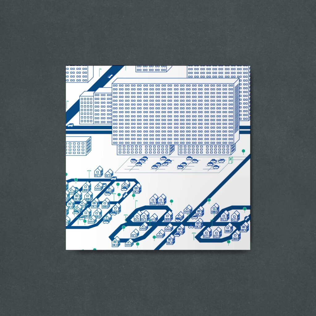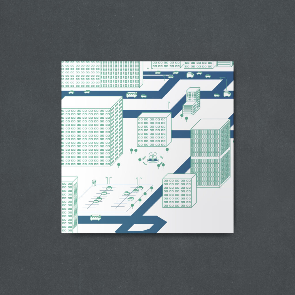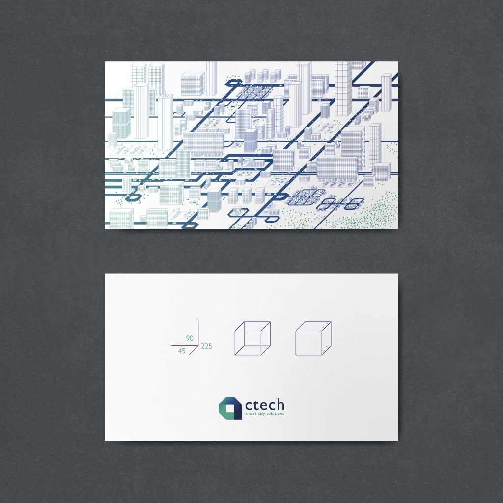 Konstrukcja miasta na podstawie logo, wykorzystana do materiałów reklamowych dla klienta CTECH(zaprojektowane podczas zatrudnienia w Mocne Brandy)Autor logo: Łukasz Kaczmarek (Mocne Brandy)