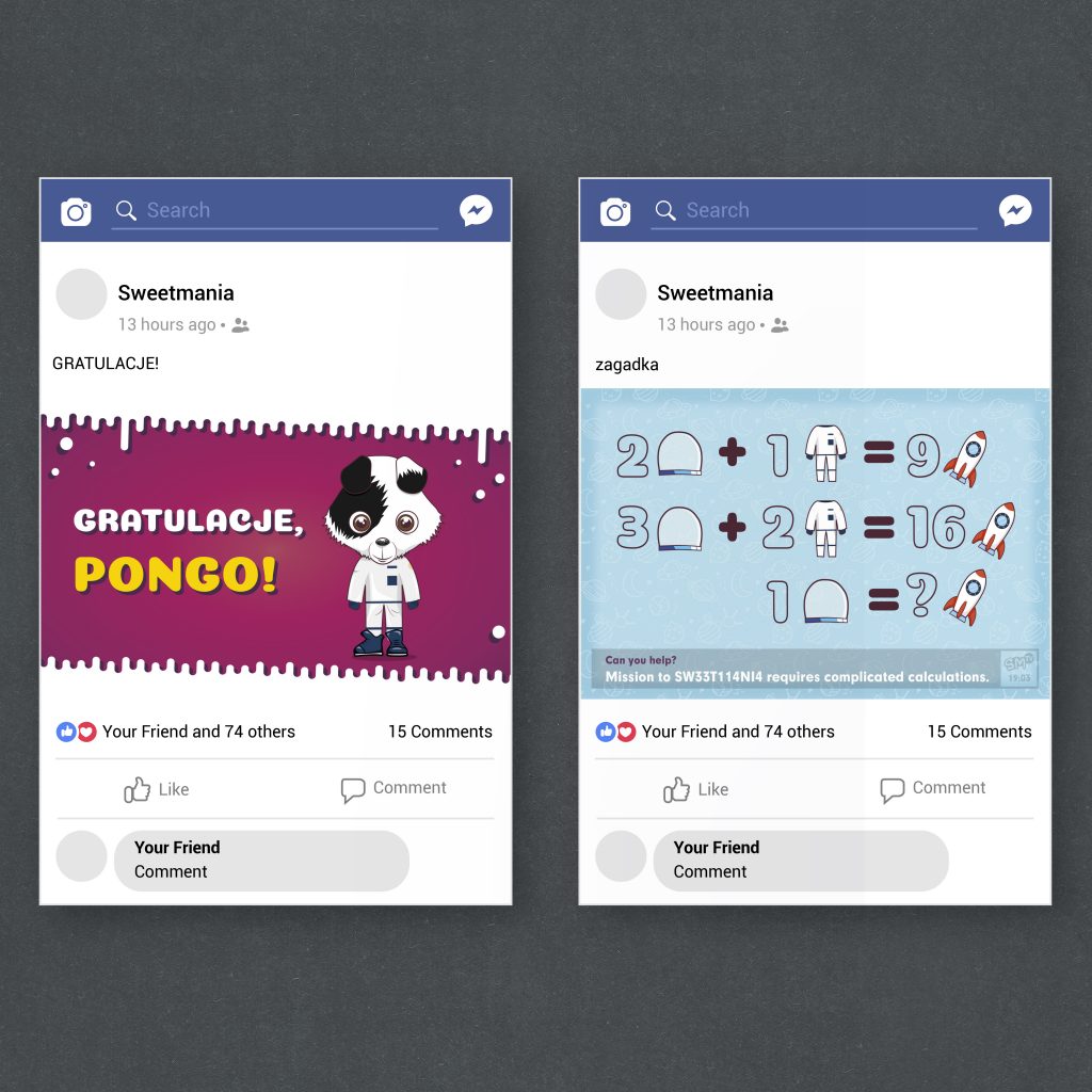 Grafiki do postów na Facebook dla klienta Sweetmania(zaprojektowane podczas zatrudnienia w Mocne Brandy)